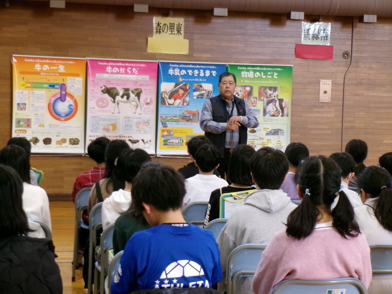 今年も、牛に関わる森の里小学校ならではの取り組みとして、キャリア教育講演会が行われました。牛に関わる仕事について学びました。将来の仕事を選ぶ上で、さまざまな職種の方の生の声を聴くことのできる貴重な機会となりました。